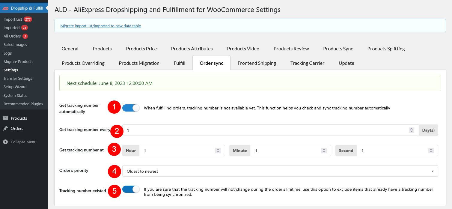 1. Get tracking number automatically: When fulfilling orders, tracking number is not available yet. This function helps you check and sync tracking number automatically.