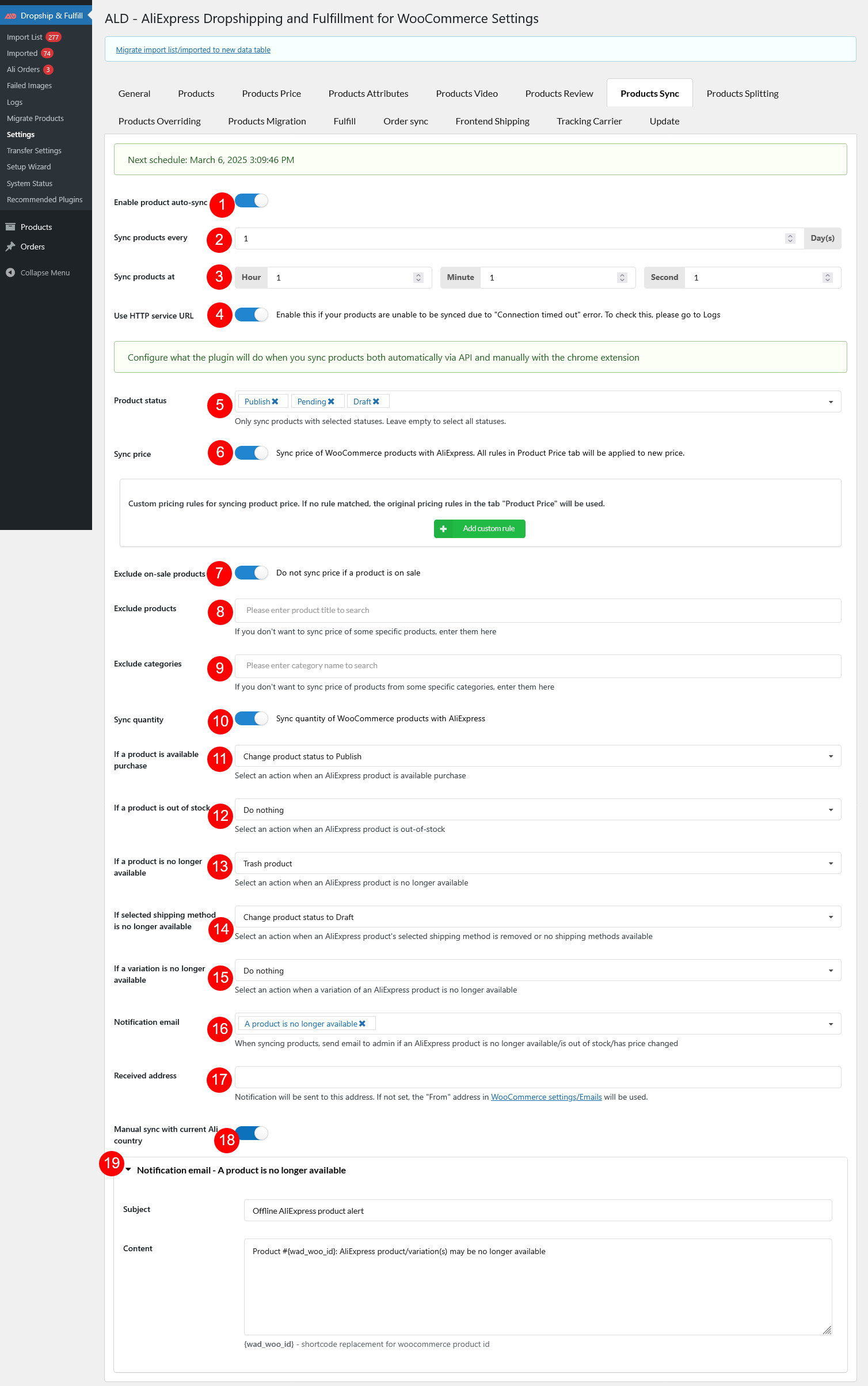 Product Sync allows you to update the price and quantity of imported products on your WooCommerce store whenever these values change on the AliExpress store.