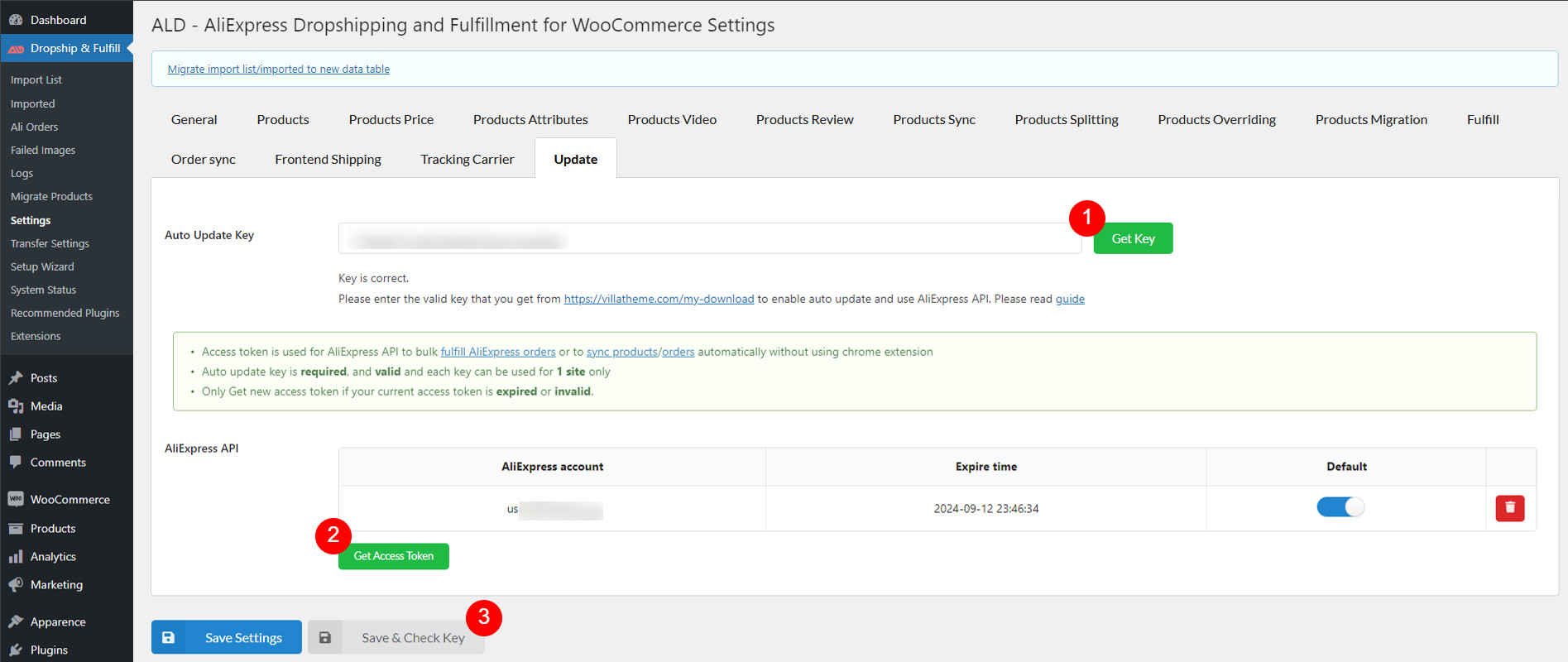 Go to Dashboard >> Dropship & Fulfill >> Settings >> Update
