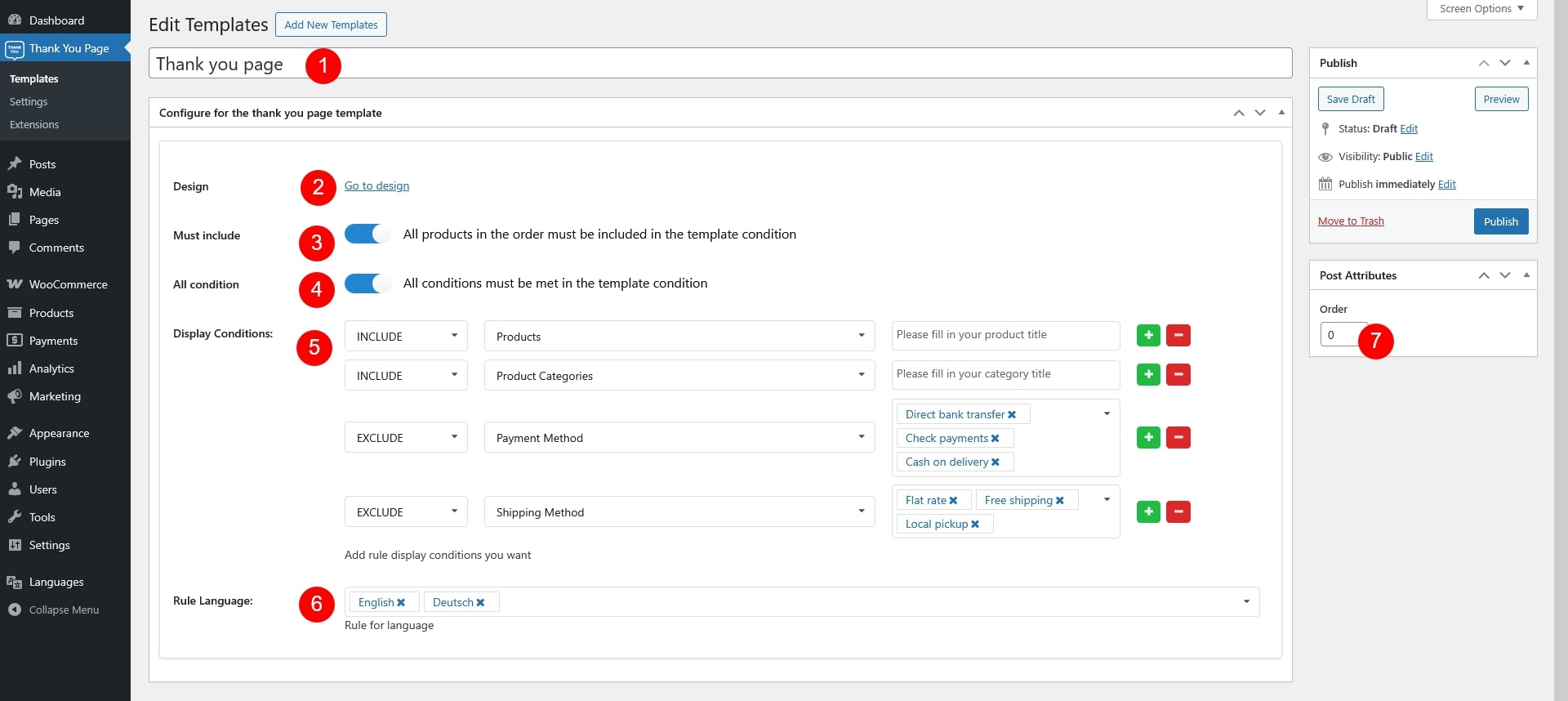 If you don’t have multiple templates, the default template in Thank You Page plugin general settings (6) will be applied.