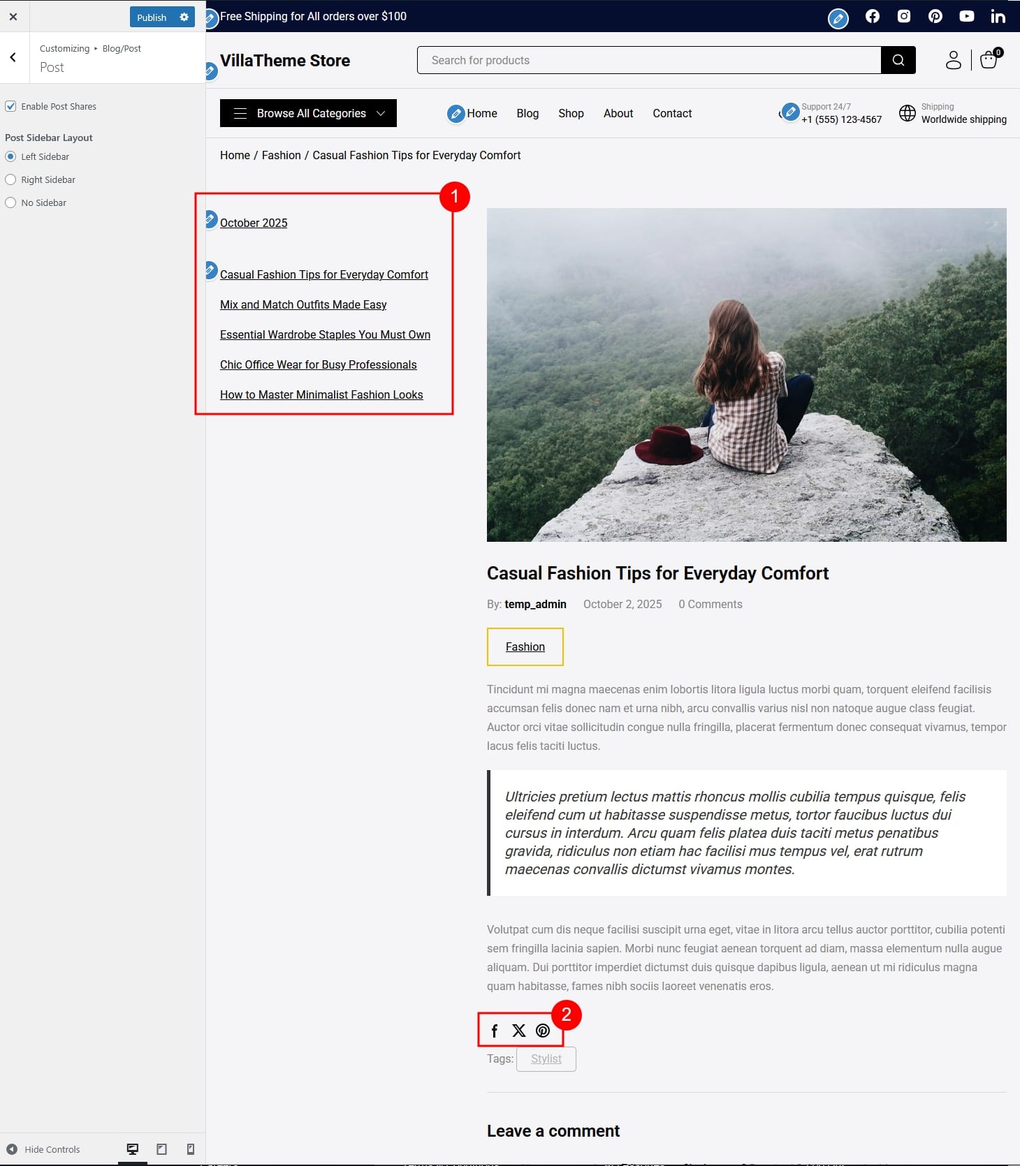 - Enable Post Share: Turn this on to display social sharing buttons, allowing visitors to share your articles on platforms like Facebook, X…