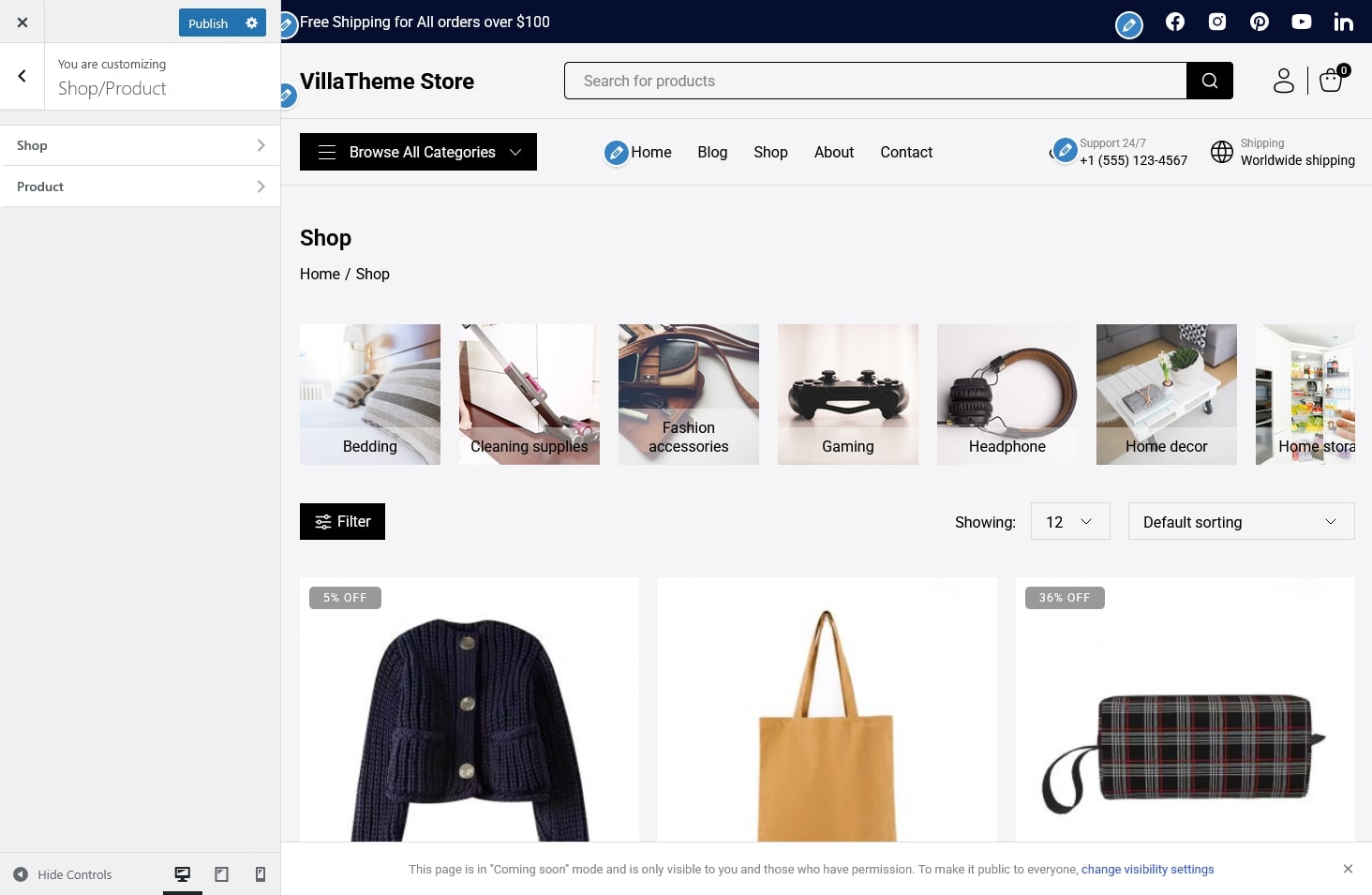 - Number Of Products On Shop Page: Paginate the Shop page by setting how many products are shown per page in your product listing.