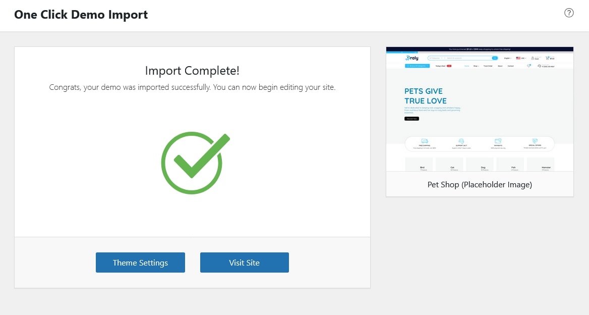 - Click Visit Site to visit your site’s homepage to see the imported demo in action.
