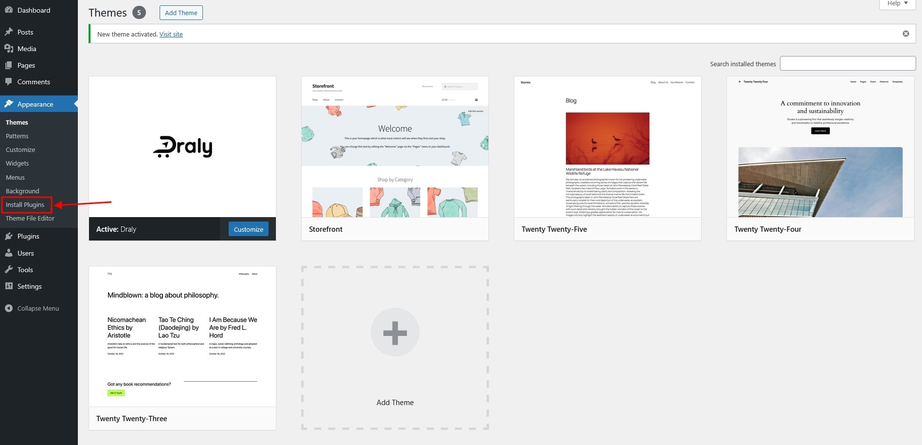 Go to Appearance > Install Plugins in your WordPress dashboard.
