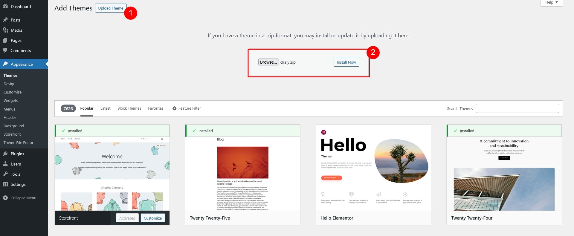 Theme Installation Posted on September 17, 2025September 17, 2025 by Angela Grey From WordPress Dashboard: Go to Appearance > Themes > Add New. Click Upload Theme and choose the .zip file. Click Install Now. After installation, click Activate.