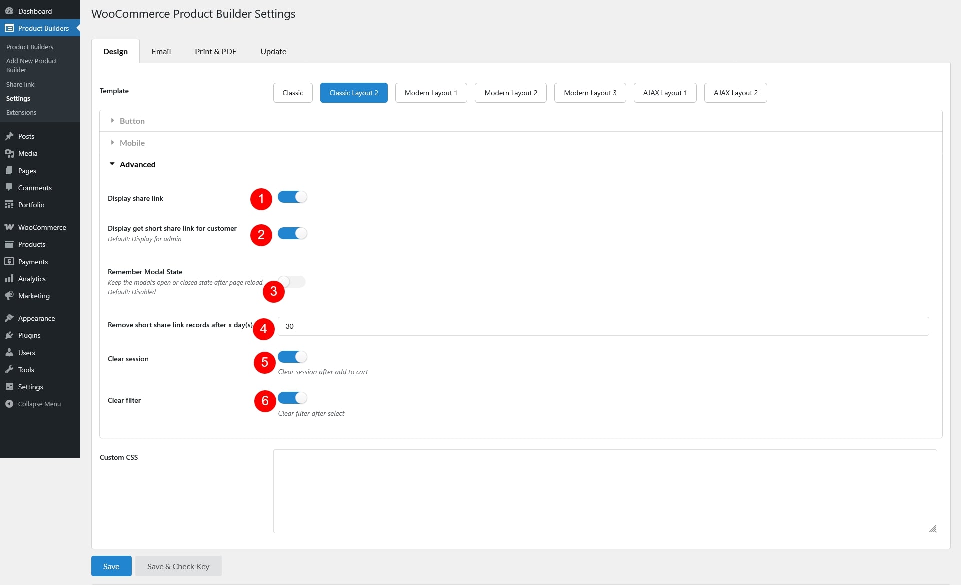 Go to Dashboard >> Product Builders >> Settings >> Design