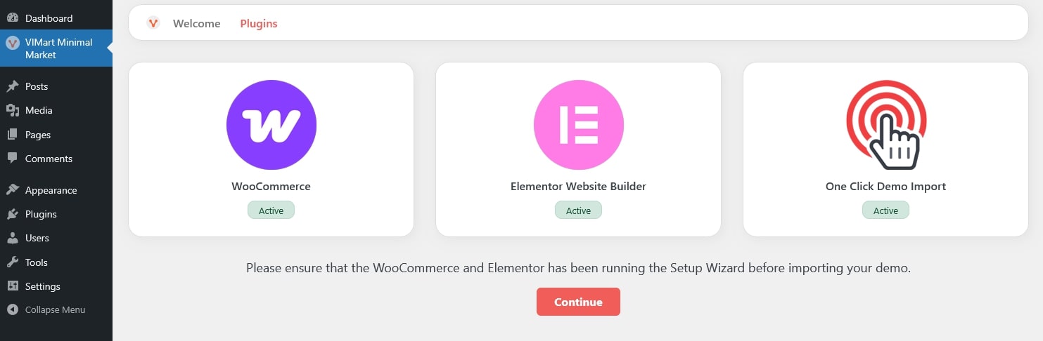 Once these plugins are active, you can proceed to import the demo content without issues.