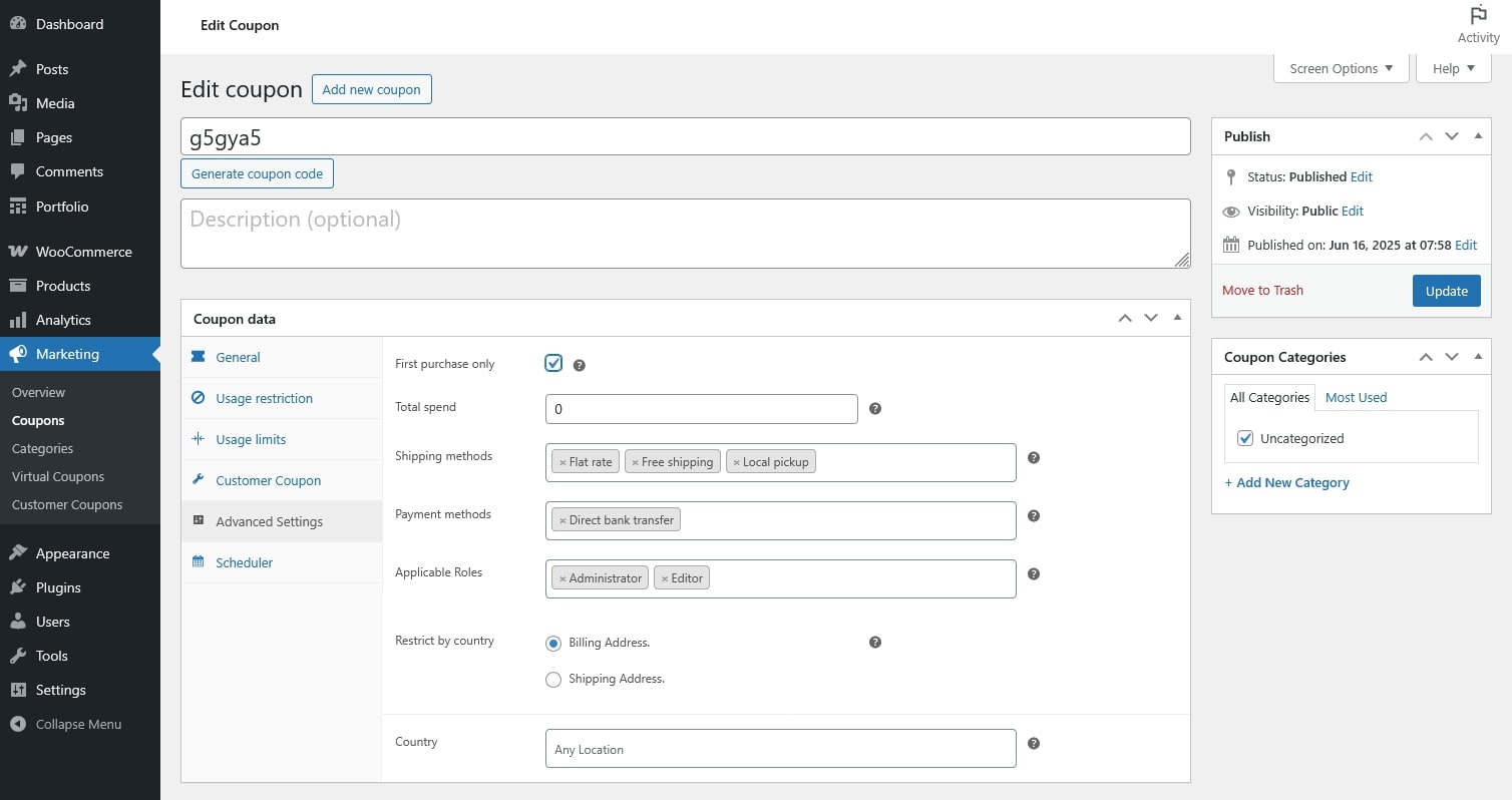 - Restrict by country: Restrict coupon usage based on the customer’s country – from billing address or shipping address