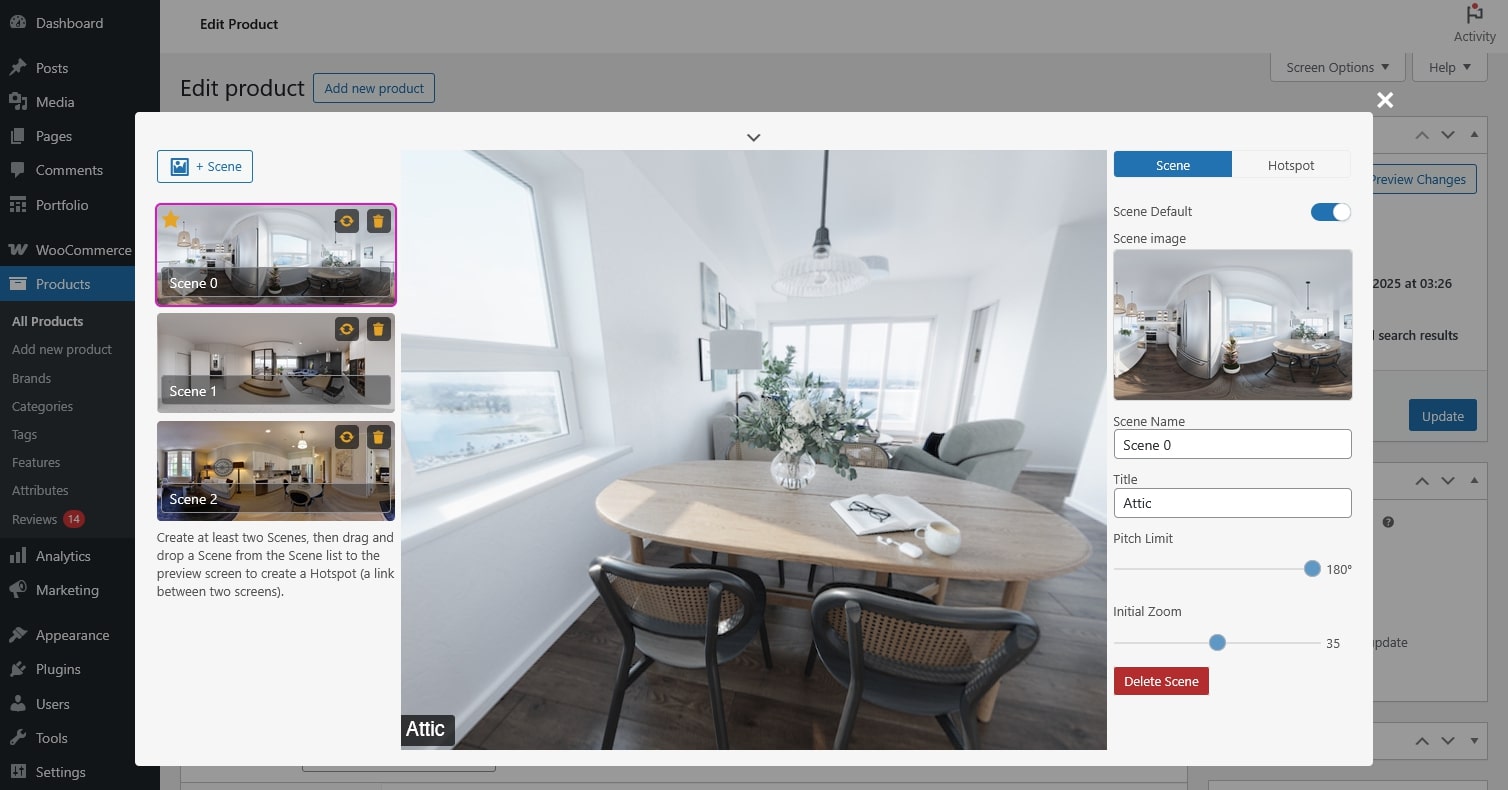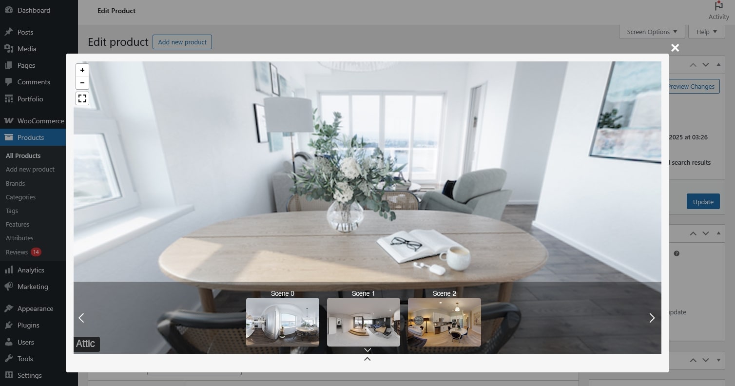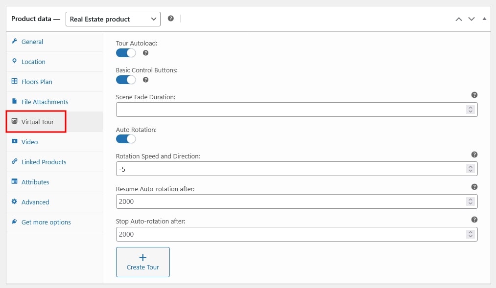 Go to the Product editing page > In the Product data > Virtual tour: Offers a realistic and dynamic experience for potential buyers or renters who cannot physically visit the property, enhancing their understanding of its features.