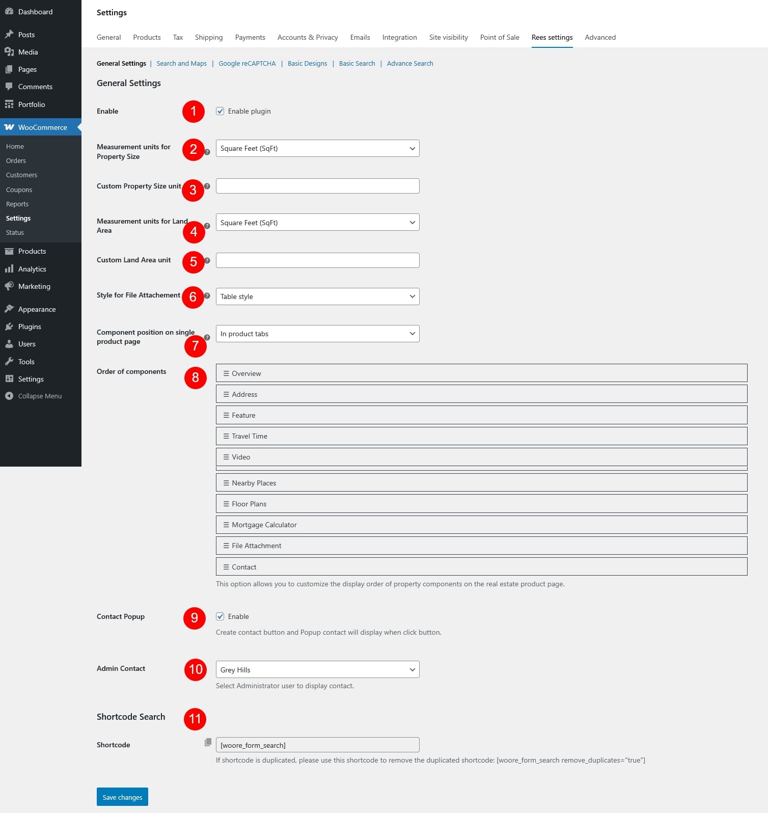 To change the measurement units of the property size and land area, go to WooCommerce >> Settings >> Rees settings > General