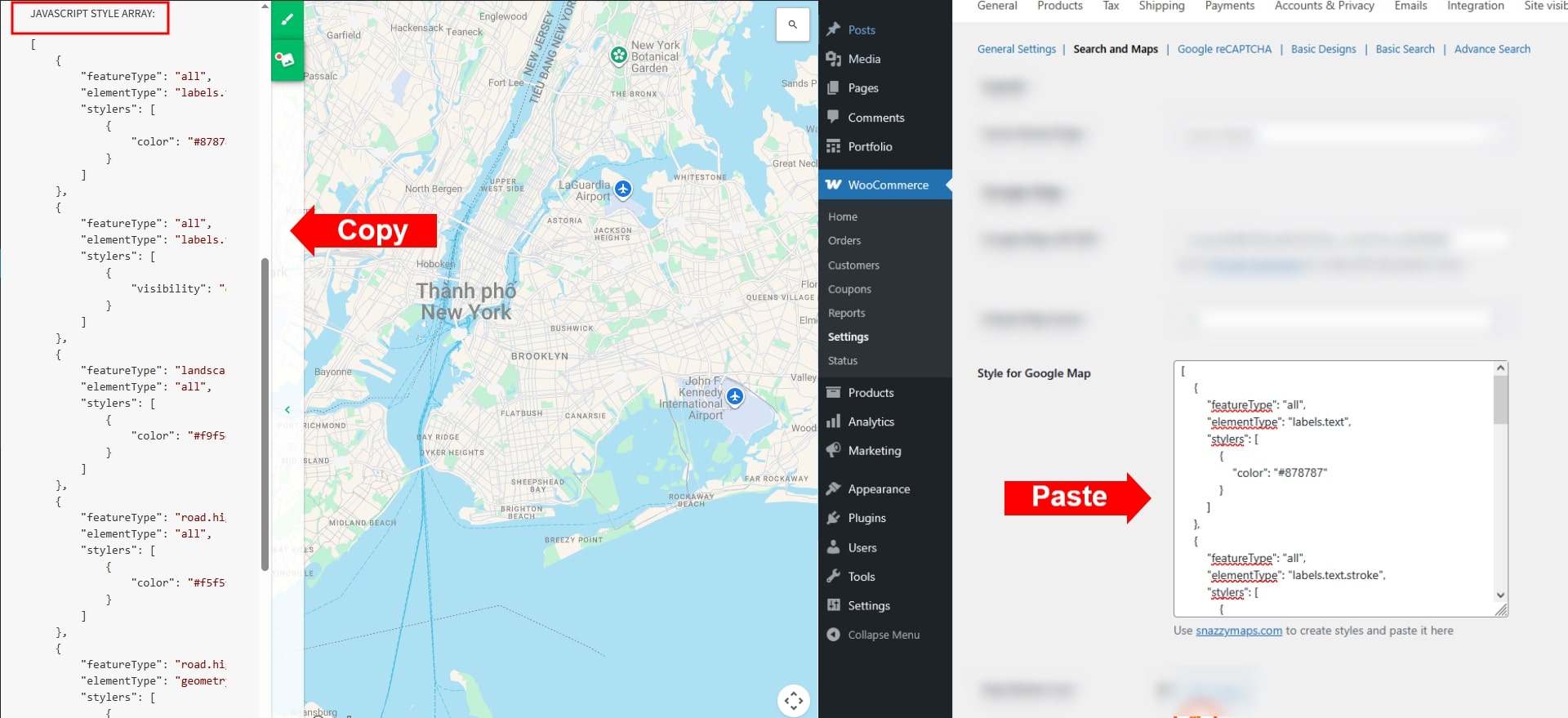 Create Google Maps API key from Google developer and paste the key to “Google Maps API KEY” under Search and Maps settings. Then configure the other settings related like: