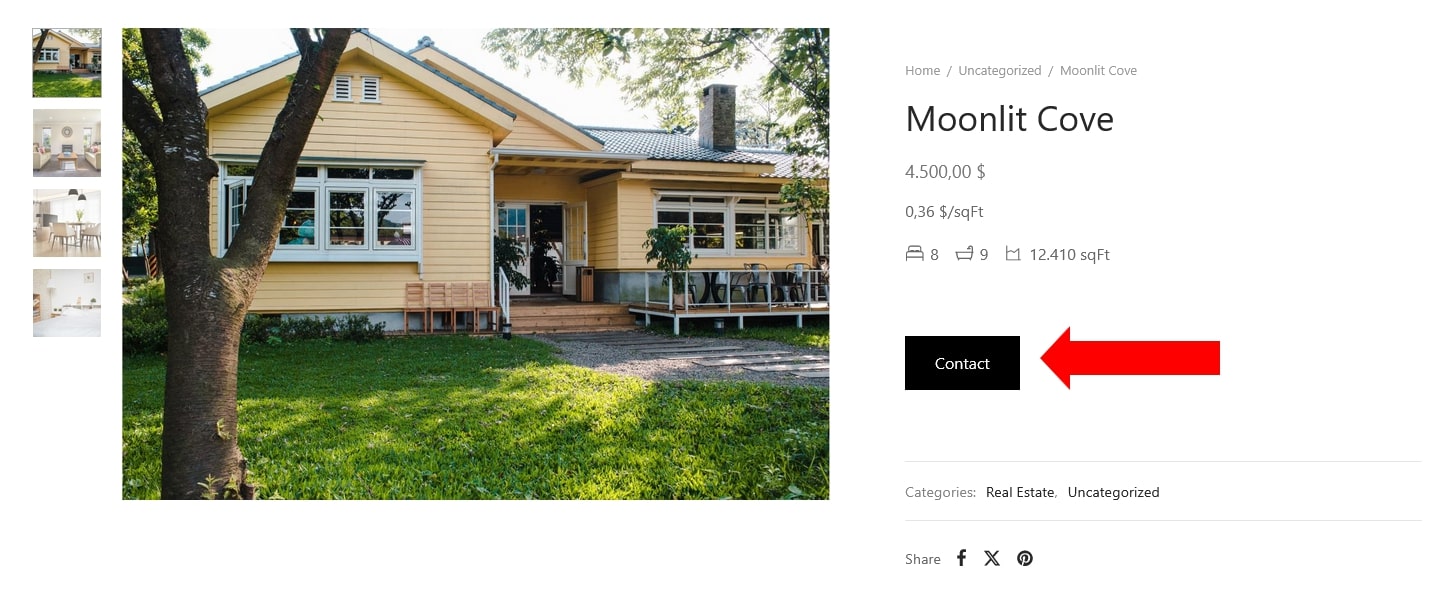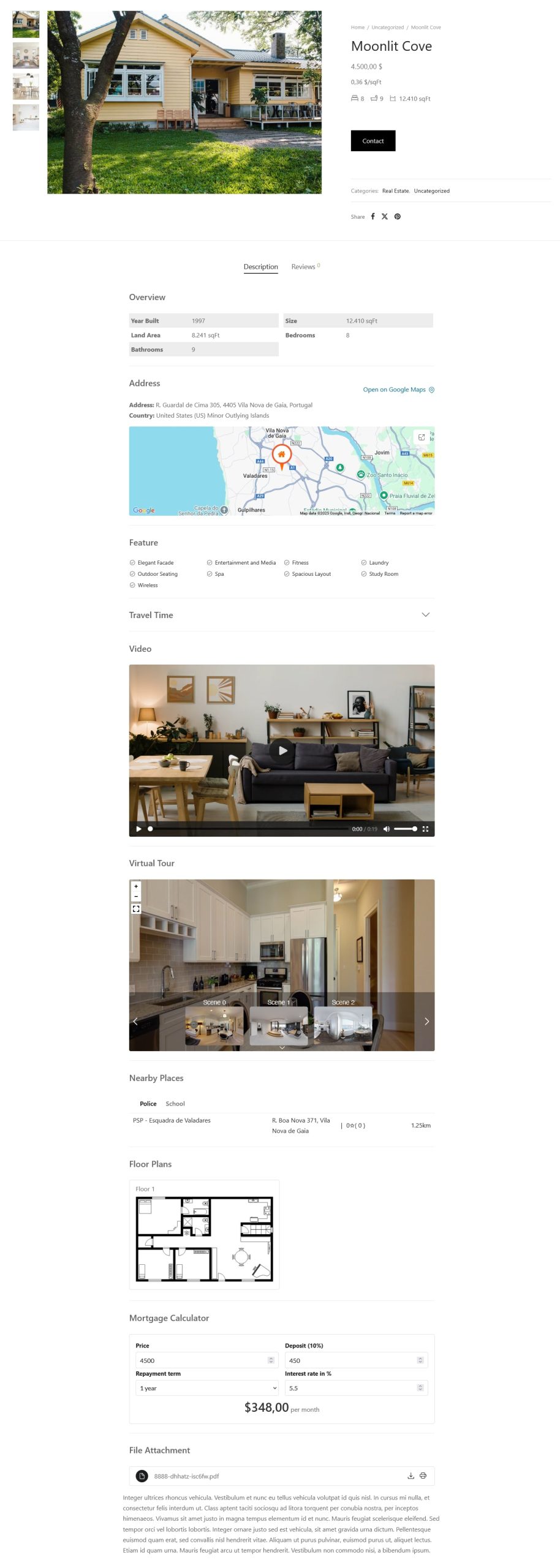On the single product page, the mortgage calculation is located under a real estate information section. In order to compute monthly mortgage payments, the price of the property will automatically be added. Buyers or renters can use this information to recalculate the desired load.