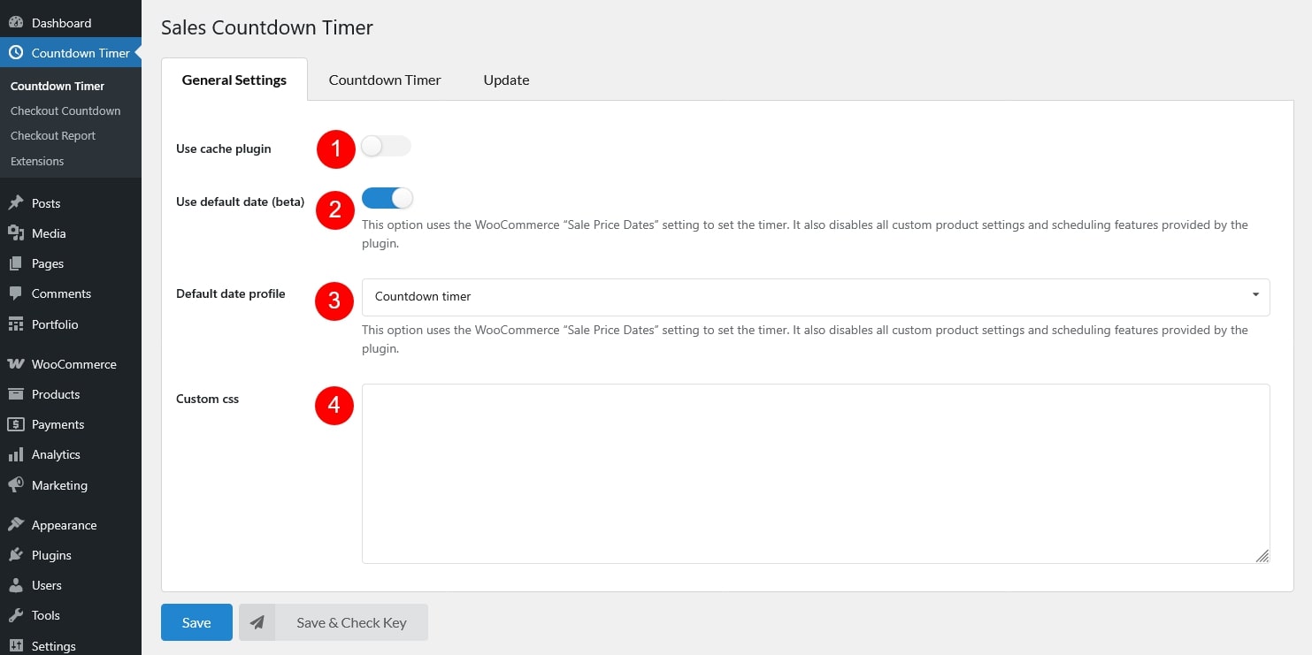 To use the WooCommerce Sales Countdown Timer feature, you need to configure a Sale Countdown Timer profile in Dashboard/ Countdown Timer then assign that profile to a product.