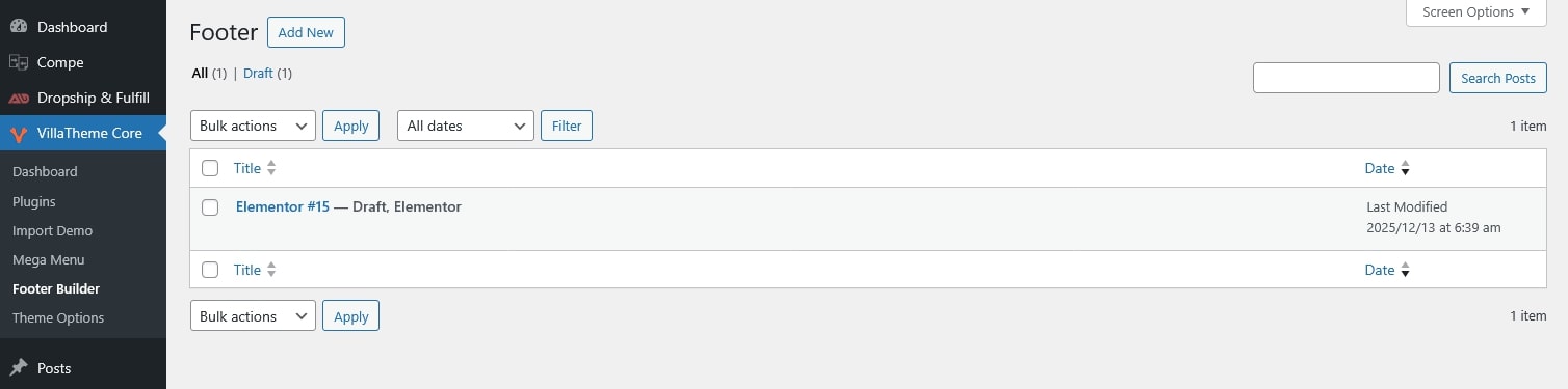 2, Footer Builder: Add code to the footer to display the content of the footer builder.