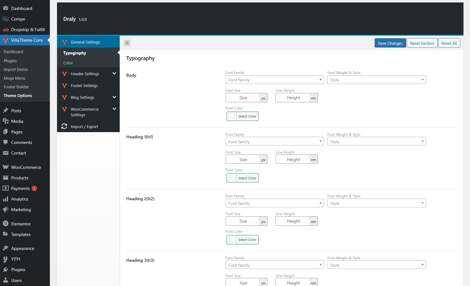 When using the Draly theme, VillaTheme Core for Theme is required to enable its full functionality. The plugin provides the following theme-specific features: