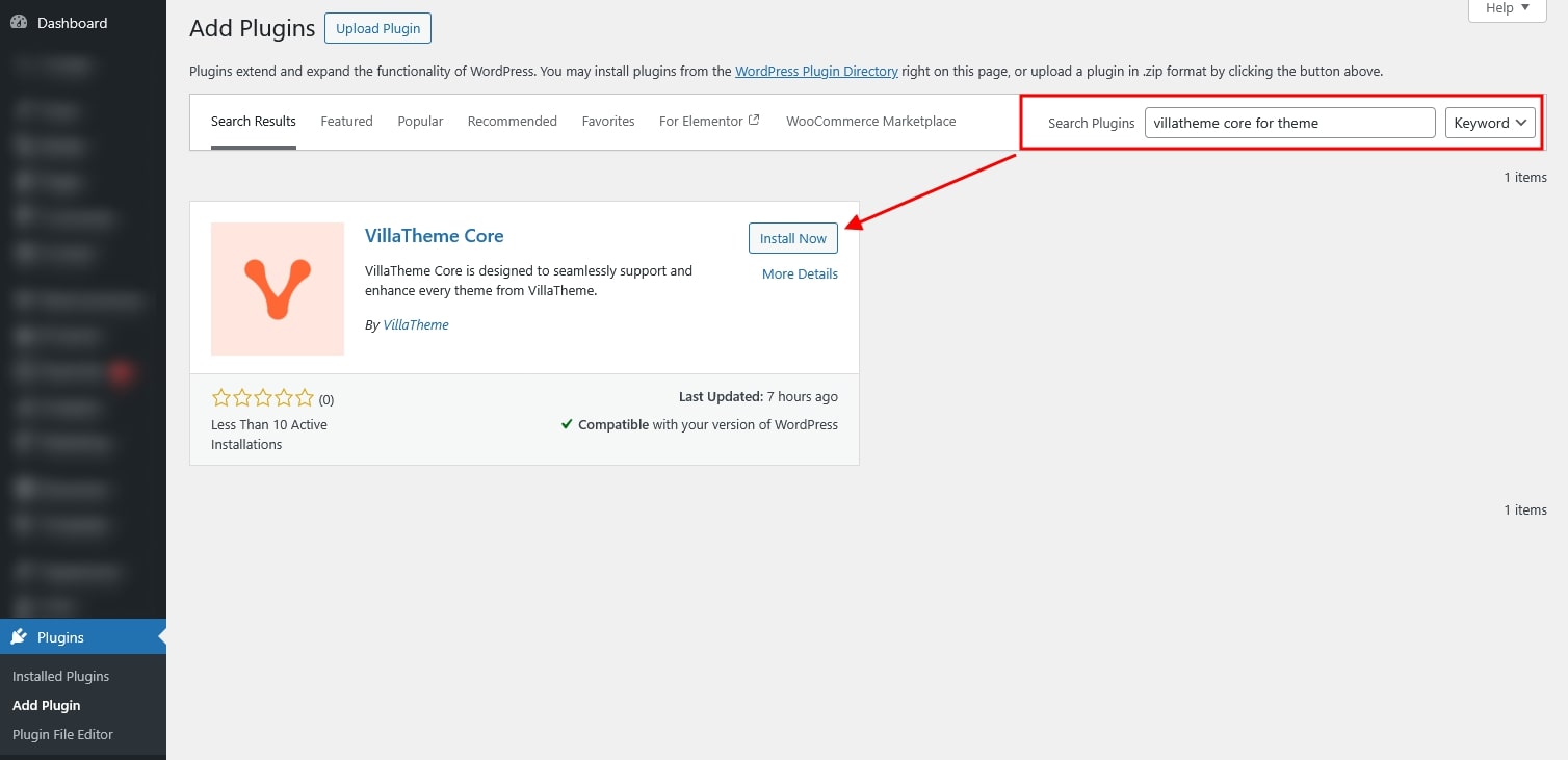 You can also install the plugin directly from the WordPress admin area by navigating to Plugins → Add New, uploading the plugin package (downloaded from this official source), or search its plugin name VillaTheme Core, installing it, and then activating it.