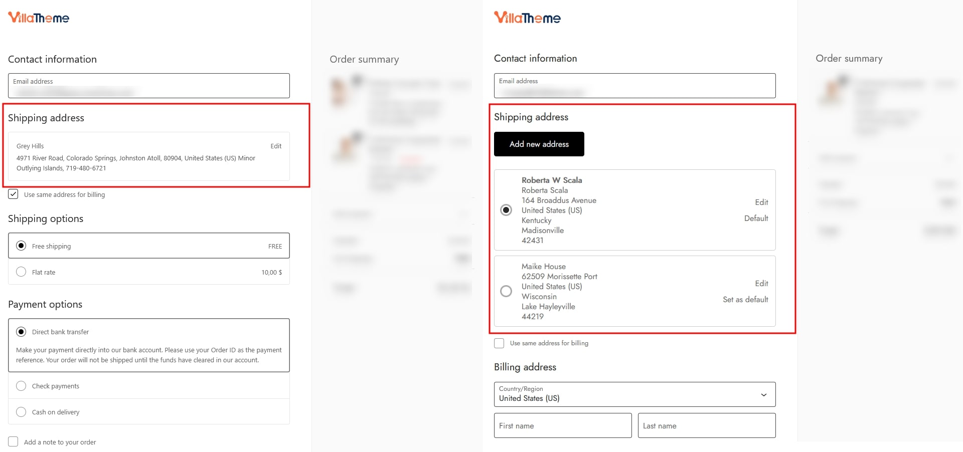 • Multi address: Allow customers to save and manage more than one shipping address in their account and select an address during checkout.