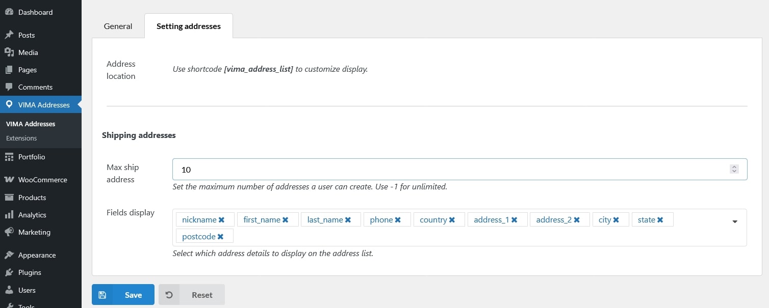 • Shortcode support: Display the address list and input form anywhere using the [vima_address_list] shortcode.