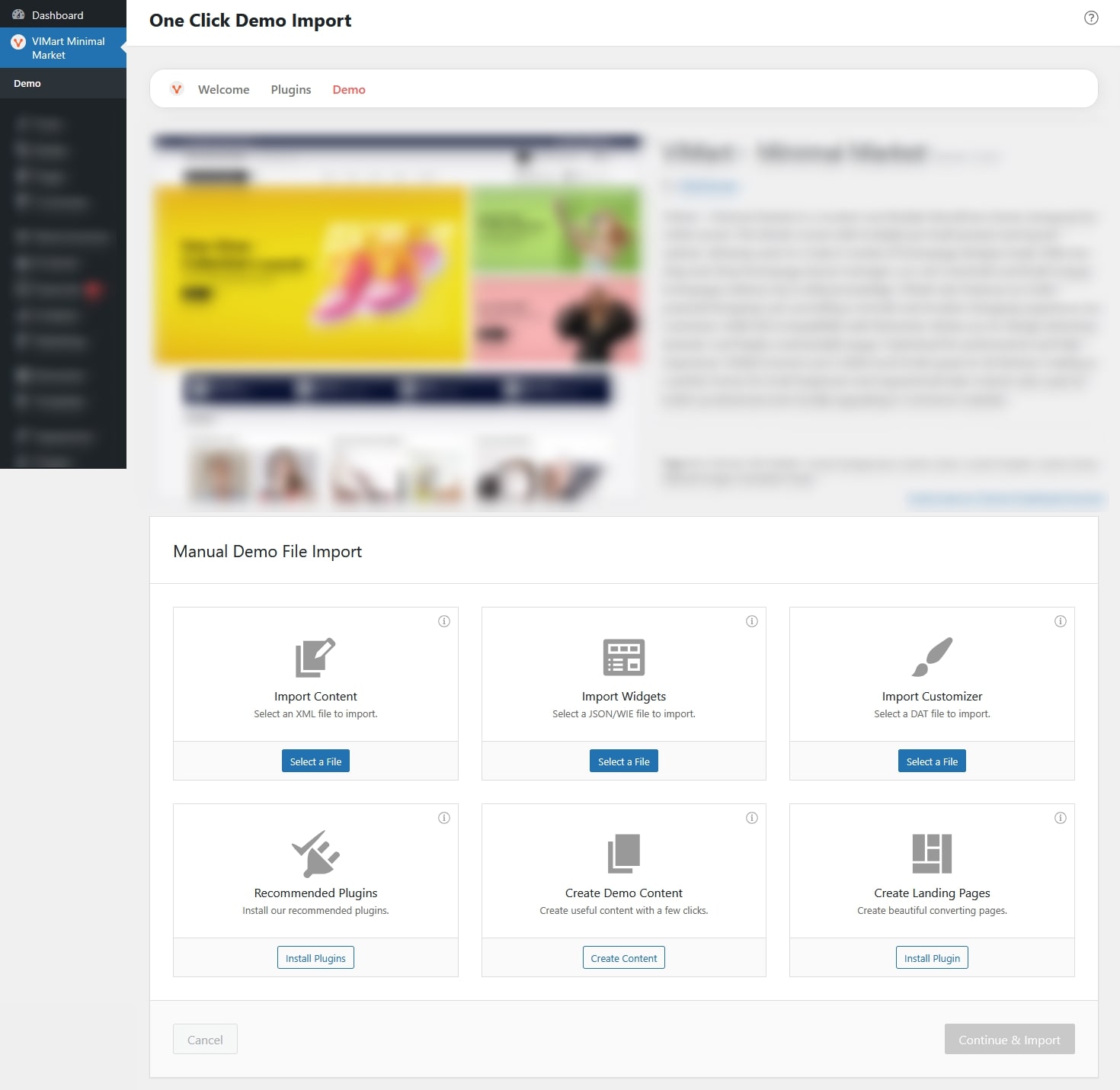 If you prefer to import the demo manually instead of using the one-click import, you can do it here. Each section below helps you bring in specific parts of the demo.