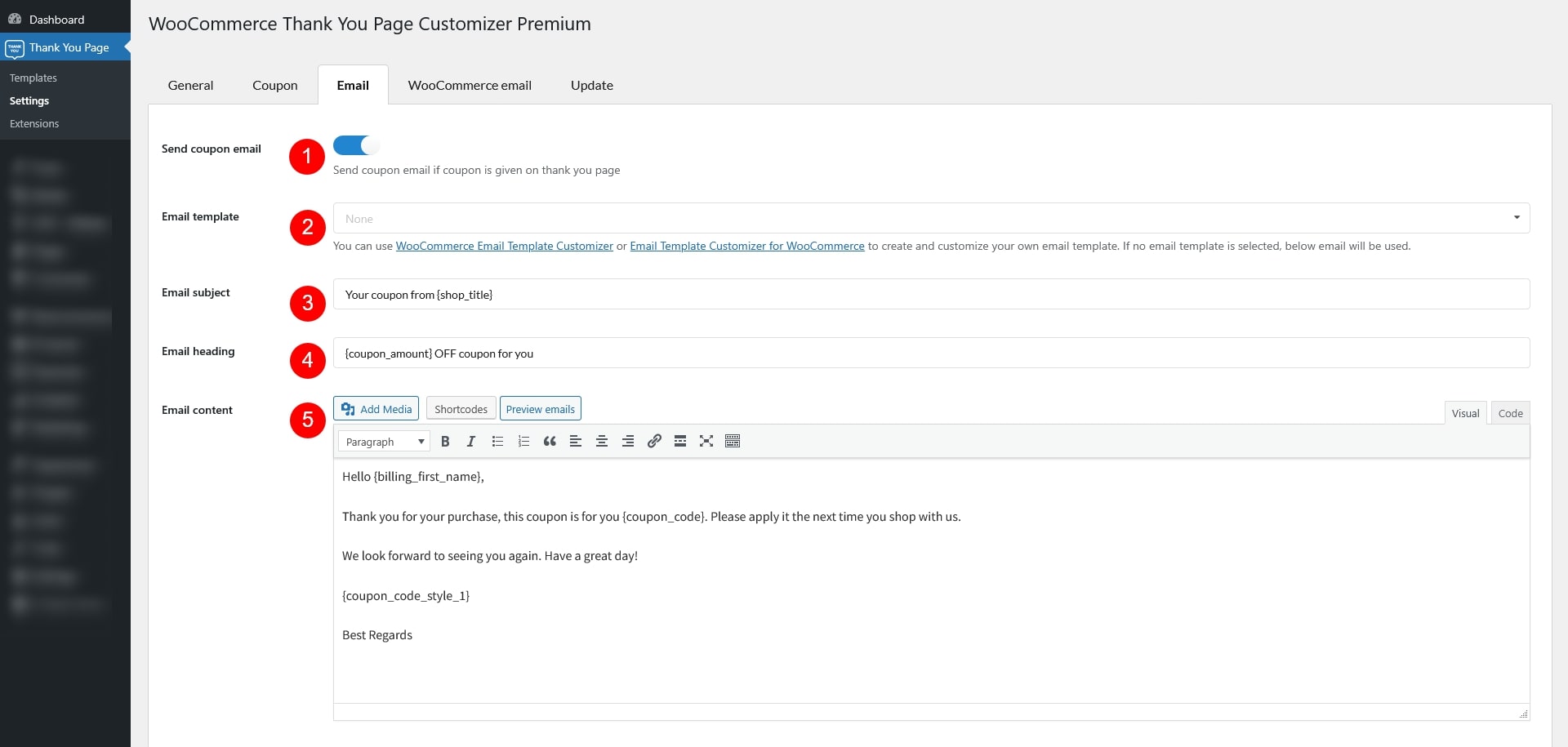 If you don’t have multiple templates, the default template in Thank You Page plugin general settings (6) will be applied.