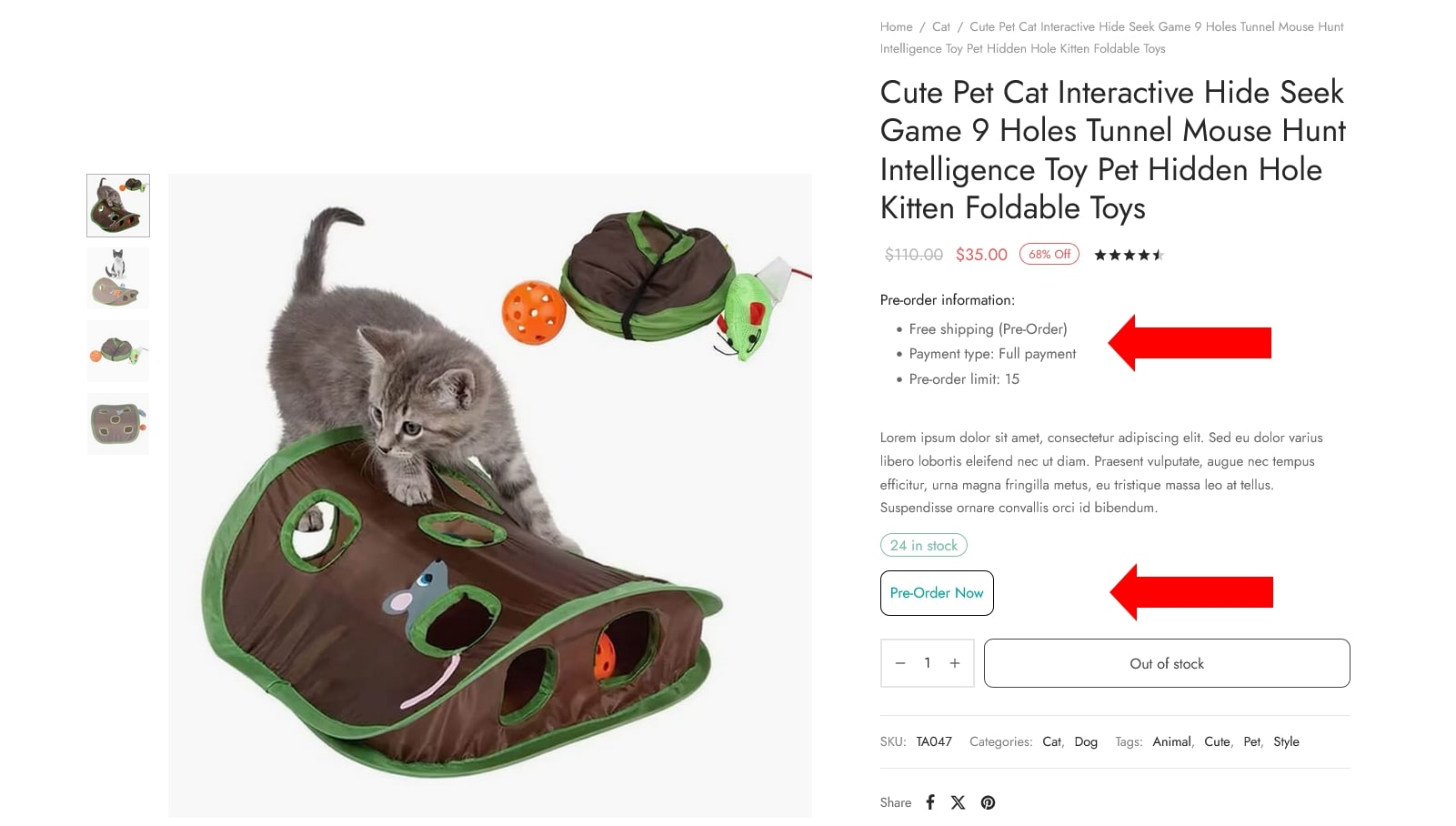 • Design Customization: Style pre-order buttons, notices, and badges to match your brand identity.