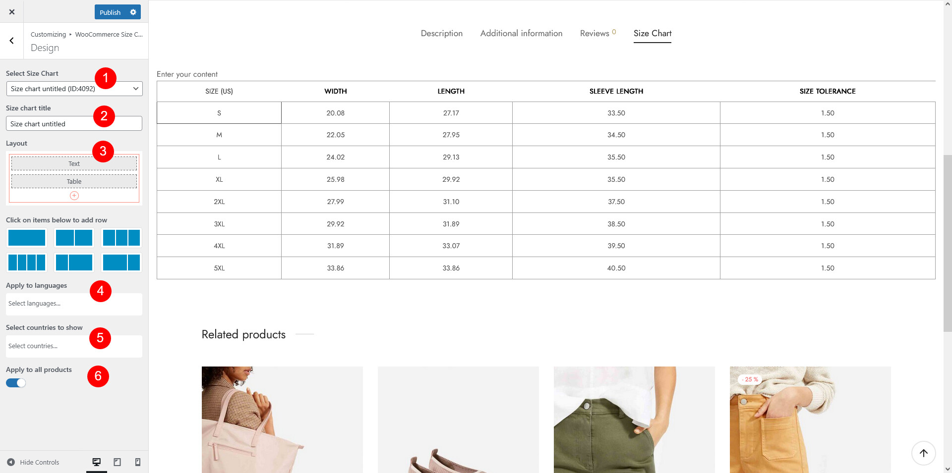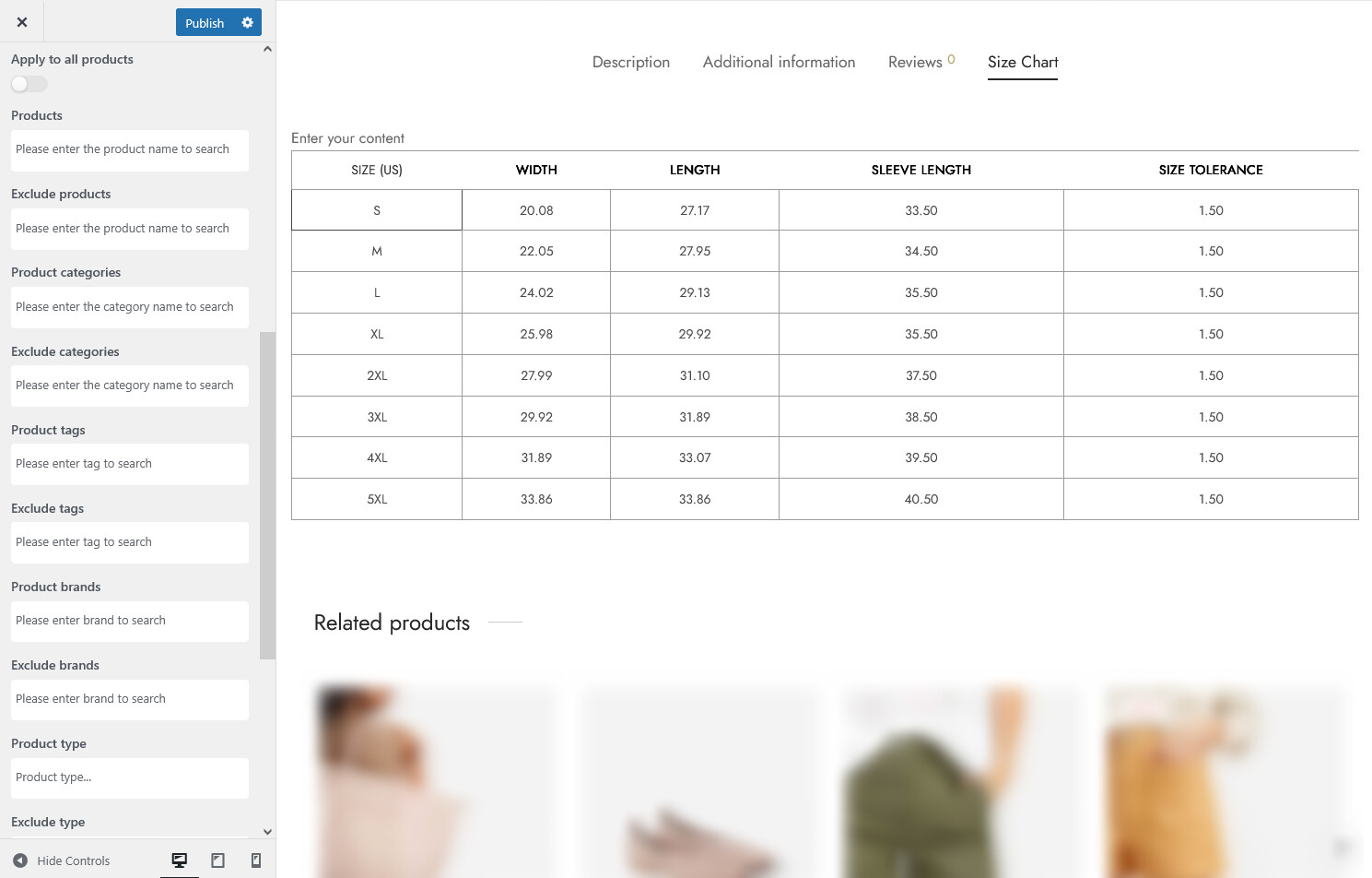 Once you’ve completed your size chart design and made sure everything is in place, click “Publish” to make the size chart live.